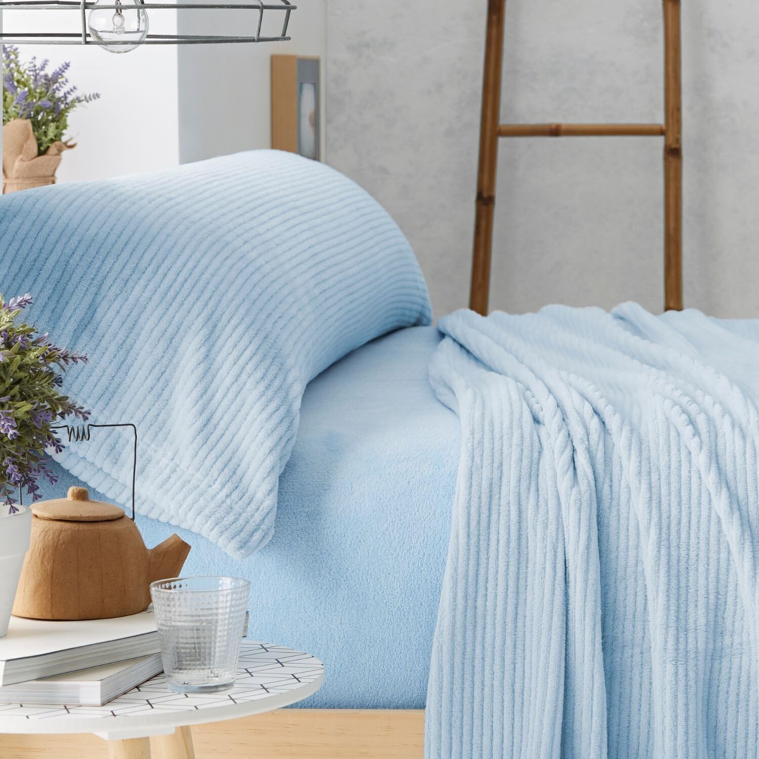 Juego de sabanas de coralina , um tejido de sábanas de invierno con caracteristicas excepcionales de suavidad e conforto e con capacidade calorifica.